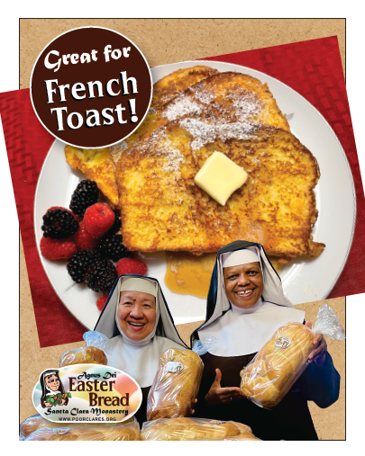 Join us for our traditional Agnus Dei/Easter Bread Sale on Saturday, March 2026 from 10 AM to 4 PM at the Monastery.
